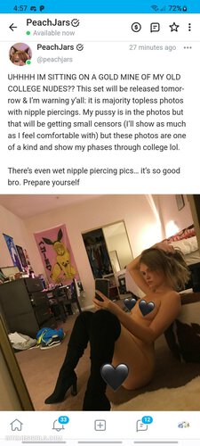 Hot only fans PeachJars sex photoshoot leaked from onlyfans. There is more than on reddit from sexy only fans PeachJars is showing her breast on cosplay sex and nudes only fans leaked from from March 2022 for free on bitchesgirls.com. Thot PeachJars gonewild. PeachJars cosplay hot premium content. Do you know what is real name of PeachJars?. She is definetly older than 18, but do you know what is PeachJars age?